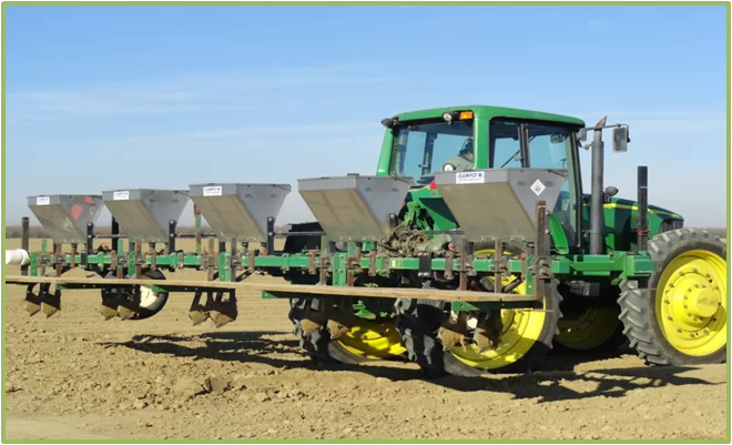 BountiGel is added to the soil with traditional equipment and remains in the root zone, keeping the root zone moist between irrigations, and preventing fertilizer and other nutrients from migrating away. This routinely improves yields, with less water and less fertilizer, and can also improve transplant success.